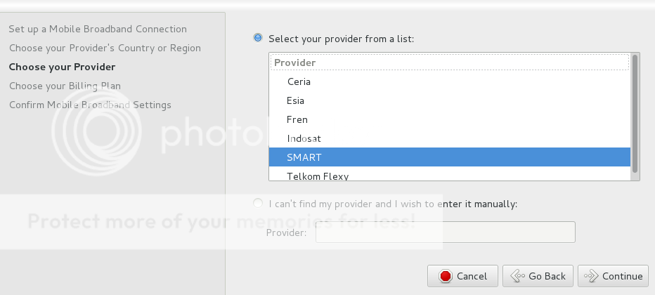Disini saya hanya akan menambahkan cara setting provider tertentu. Dan berharap tutorial ini untuk membantu yang baru memulai kehidupan baru di linux khusus nya fedora.