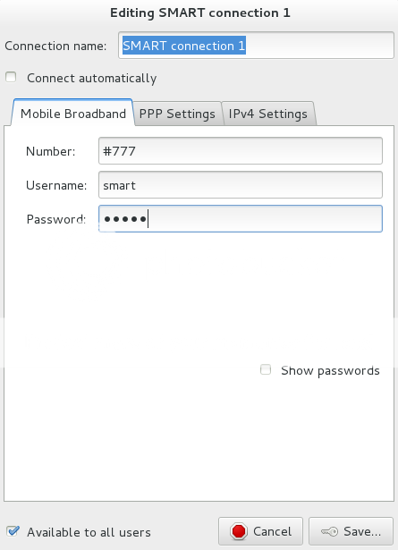 - Ketikkan smart pada username dan password serta #777 pada Number.